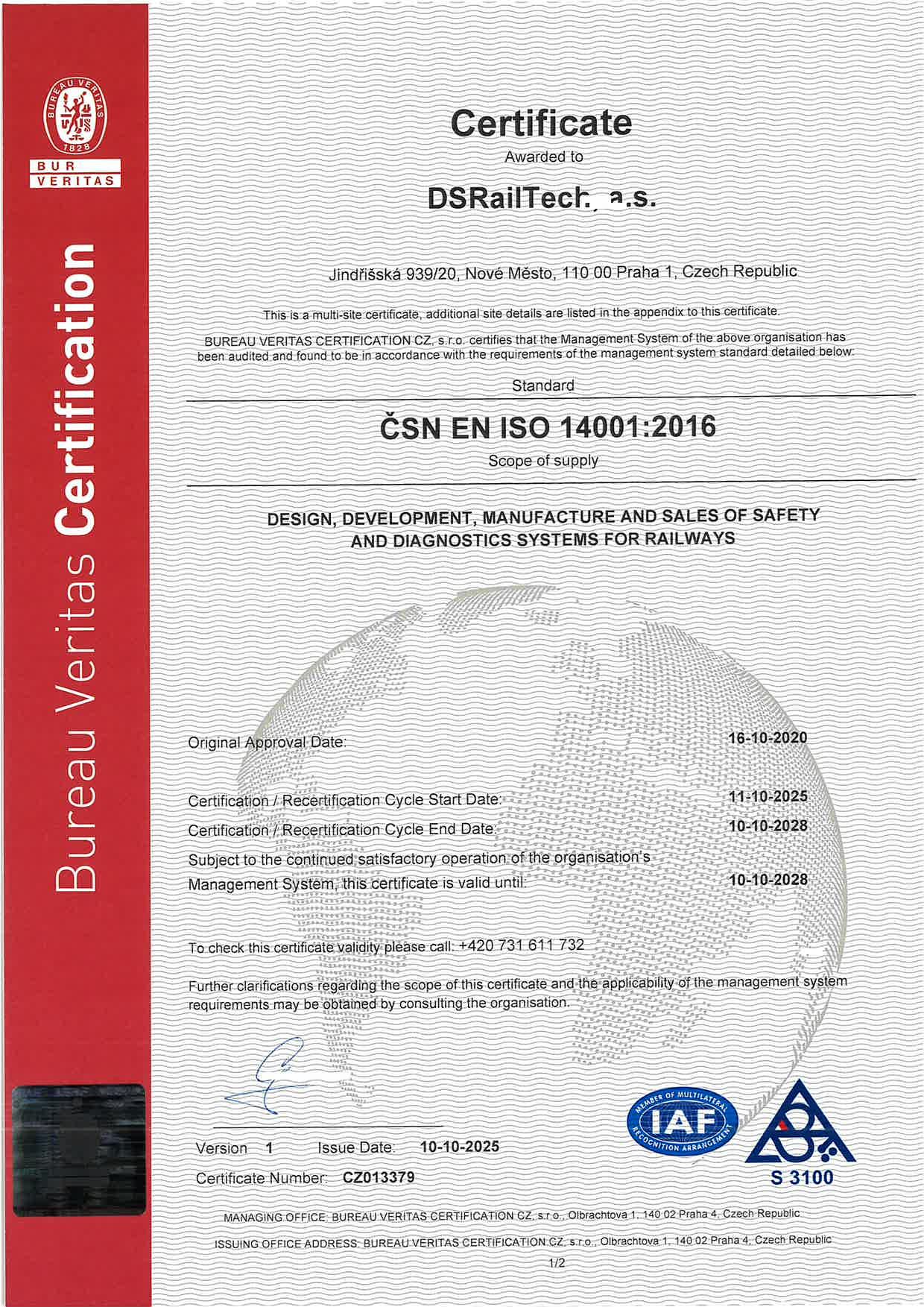 we would like to hereby inform you that our company is committed to the continuous compliance with the environmental protection requirements. For the purpose of proving our responsible behavior in this area, by a certificate of compliance with the requirements of the international standard ISO 14001, the management of our company has declared a commitment to responsible behavior, compliance with legal requirements, as well as pollution prevention in the form of the official DSRT Integrated QMS, EMS, ISMS and OHSMS policy. Our IT policy is available upon request.